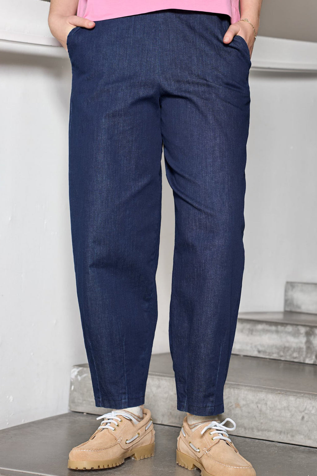 Vores Denice barrel bukser er designet i en blød denimkvalitet med et enkelt og stilrent look. De har en fast linning med bæltestropper og den populære barrel benform, som giver en flot og afslappet silhuet. Den glatte front understreger det minimalistiske udtryk og gør bukserne nemme at style både casual og mere klassisk. En alsidig model, der fungerer godt med skjorter, strik og bluser.