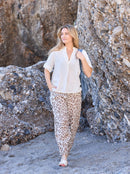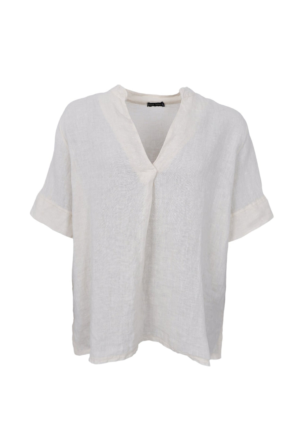 Denne flotte bluse er lavet i 100% hør, hvilket gør den super lækker og åndbar at have på. Blusen har korte ærmer, små sideslidser og en feminin v-hals, der giver et fint udtryk. Style blusen med matchende hørbukser eller et par stilfulde shorts.