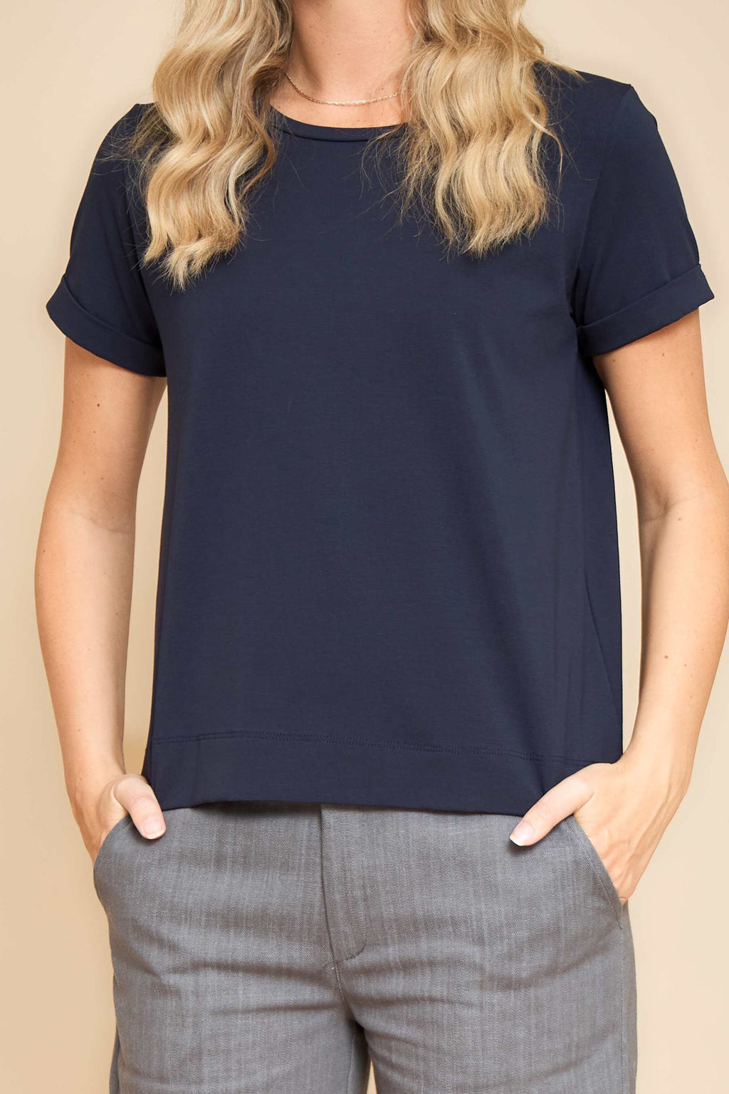 Vores kortærmede May t-shirt er en lækker løstsiddende bomulds tee med rund hals og med en lille fold på ærmerne. Blusen er ensfarvet og helt enkel, hvilket gør den utrolig alsidigt, da den dermed kan sammensæt med nærmest hvad som helst.
