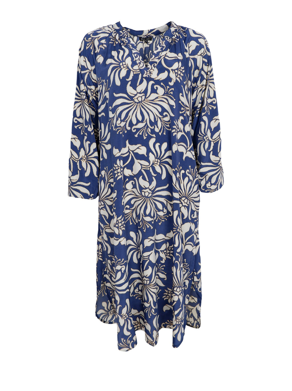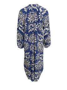Vores Luna Nelly kjole er en smuk midi kjole med lange ærmer. Ærmerne har en feminin v-hals og elastik ved ærmeåbningen. Kjolen findes i smukke og iøjnefaldende mønstre, der med sikkerhed gør, at du skiller dig ud fra mængden. Brug kjolen både til hverdag og til festlige lejligheder.