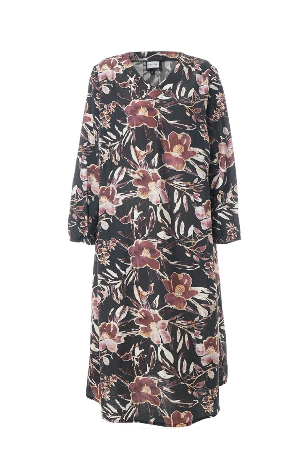 En moderne kjole i 80% viskose og 20% nylon, der kombinerer en let kvalitet med et stilfuldt udtryk. Designet har en V-udskæring og lange ærmer, mens den løse pasform og det grafiske Black Print gør kjolen til et sikkert valg til både hverdag og særlige lejligheder.