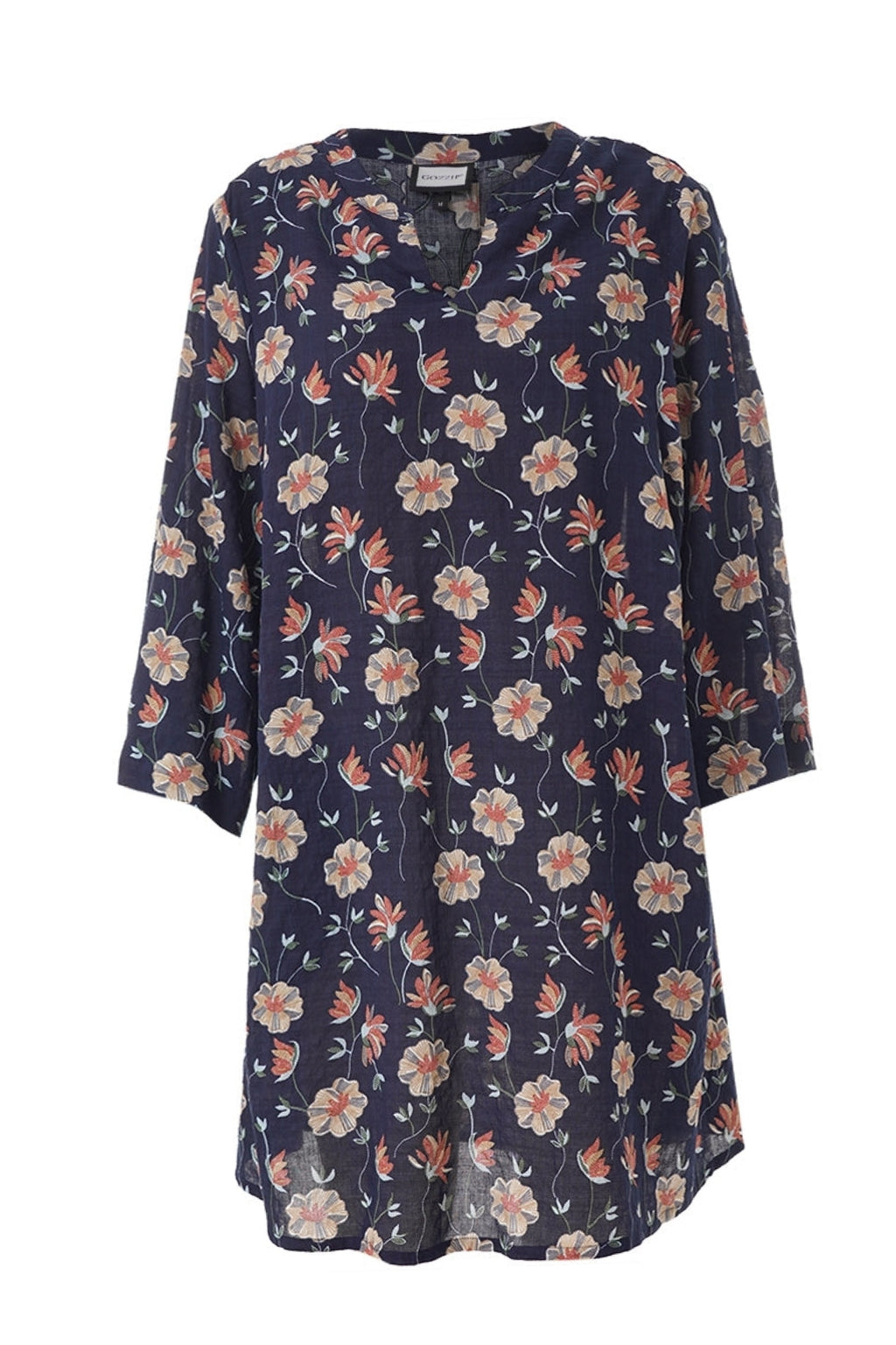 En let tunika i blød viskose med rund hals og lille V-slids foran. Modellen har et afslappet snit i en let A-form, som giver god bevægelse og et elegant fald.