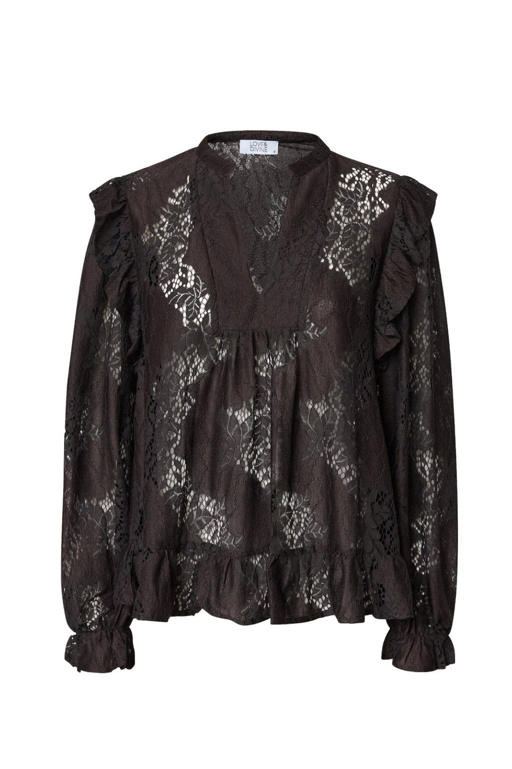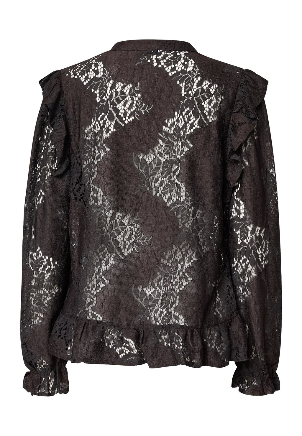 Den fineste blondebluse med flæse detaljer som passer til blonde bukserne i samme materiale og farve.