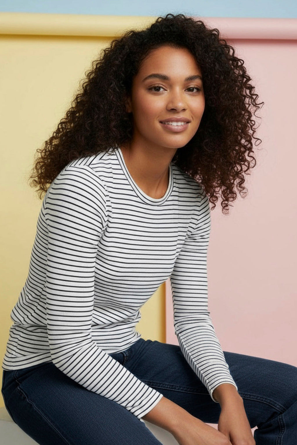Klassisk stribet t-shirt med lange ærmer og rund hals