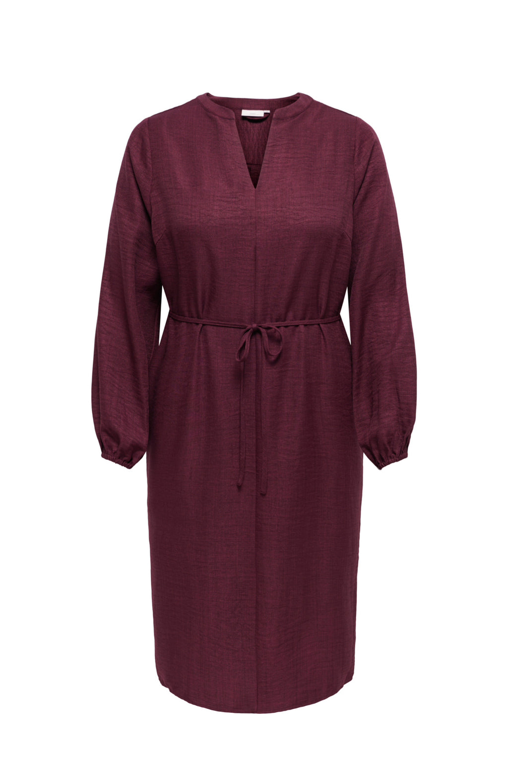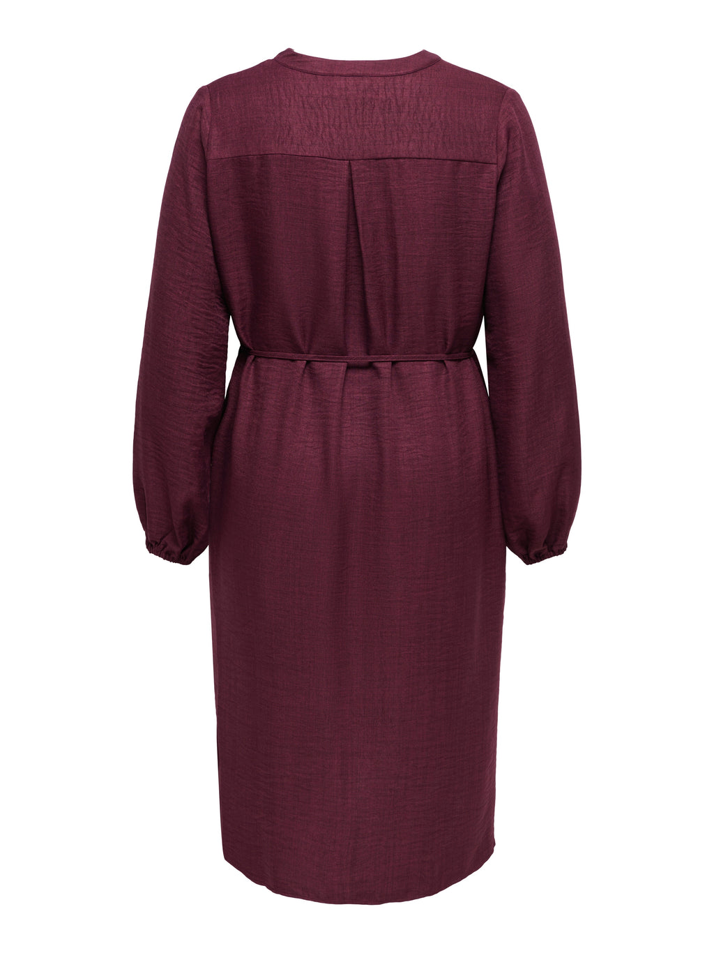 Skøn ensfarvet kjole med lange ærmer i den populære bordeaux farve.