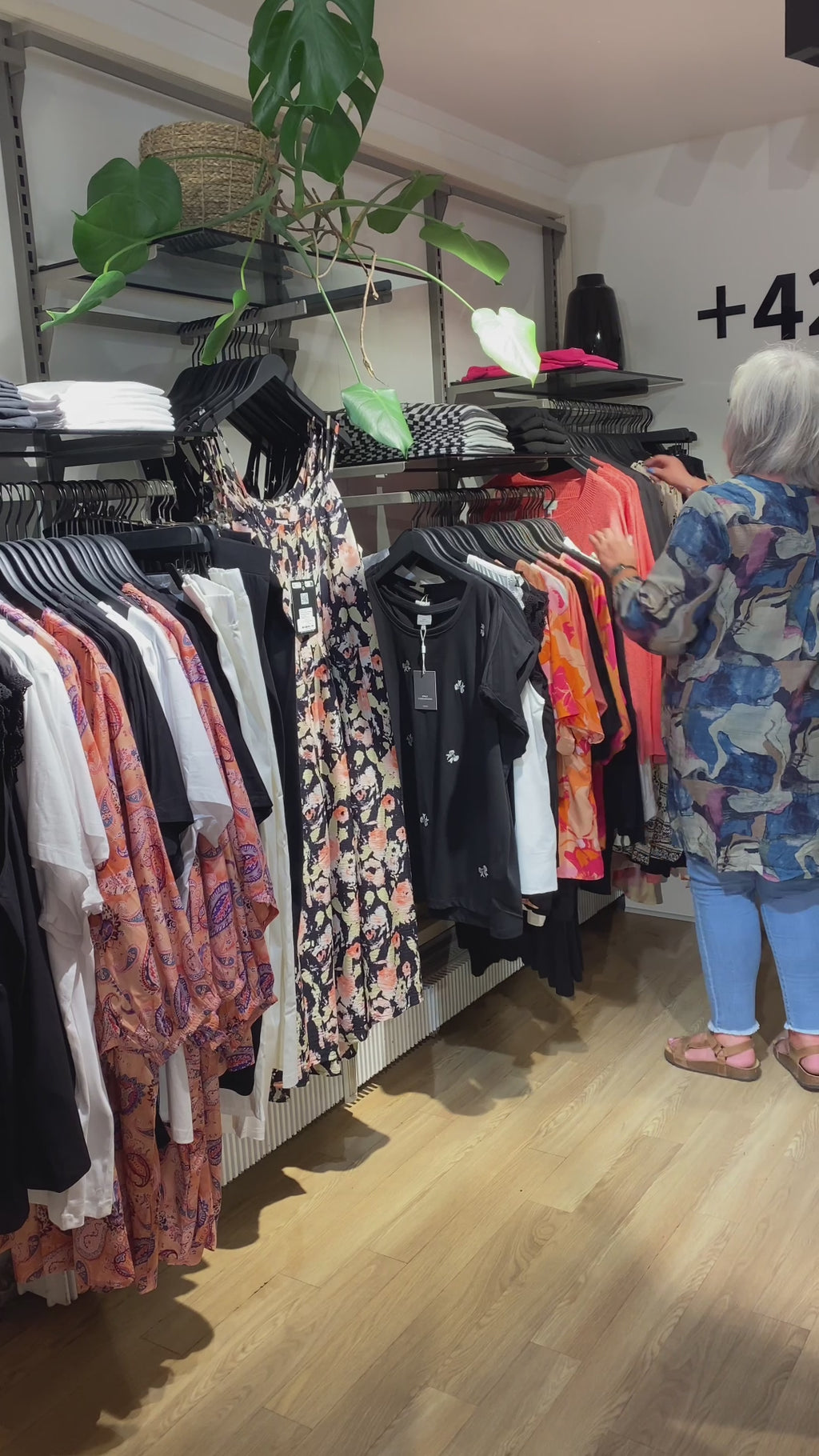 Den fineste tunika i sand meleret med sort print. Tunikaen har 3/4 ærmer og er løsthængende