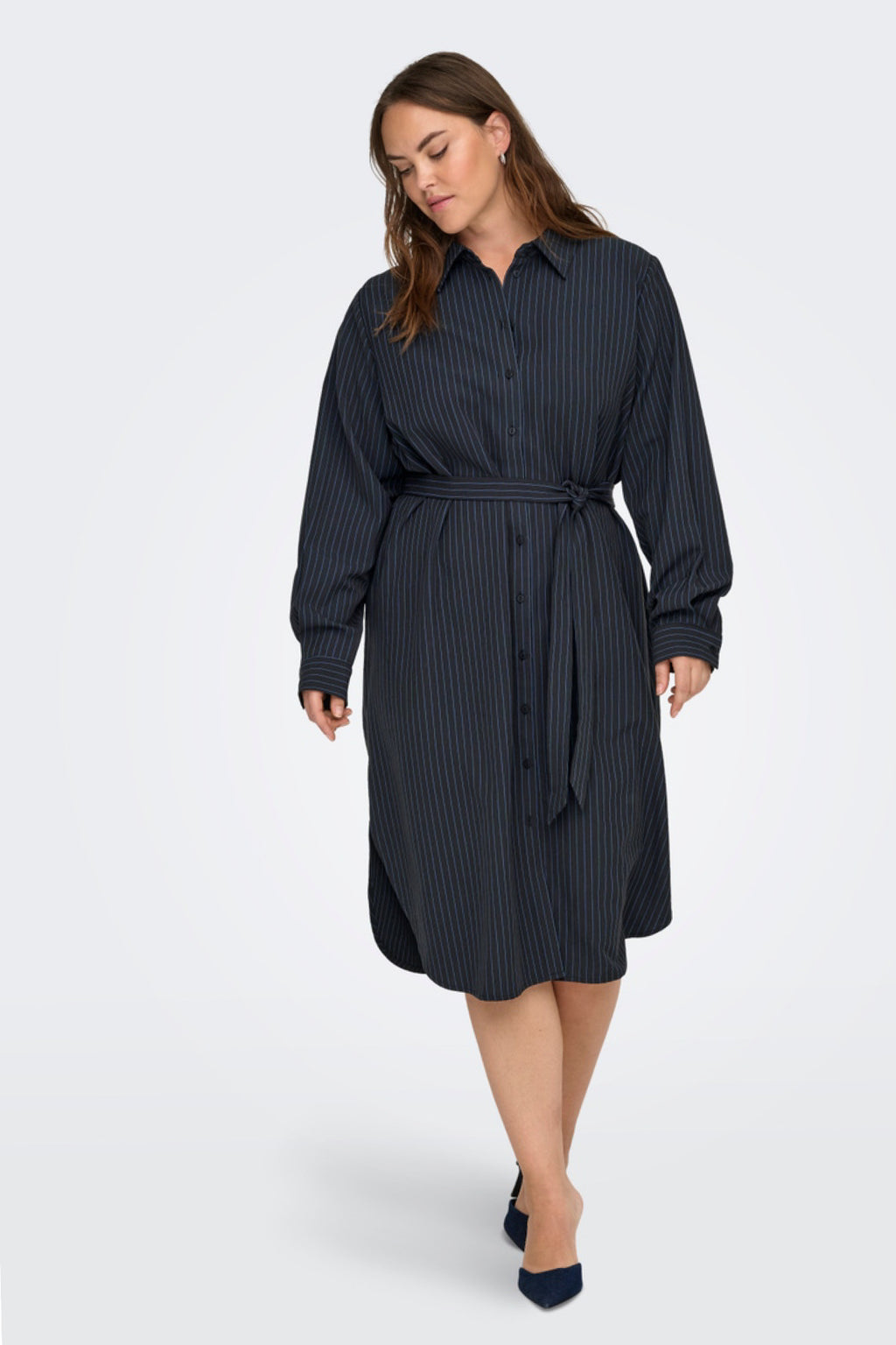Super smart skjorte kjole med en tynd blå strib