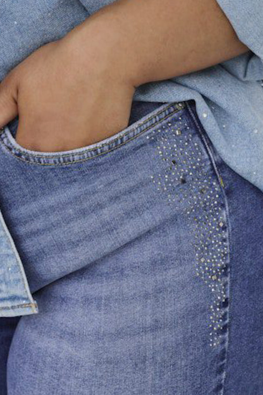 denne model er meget blød i kvalteten , har høj talje og rhinsten som pynt ned ved lommerne