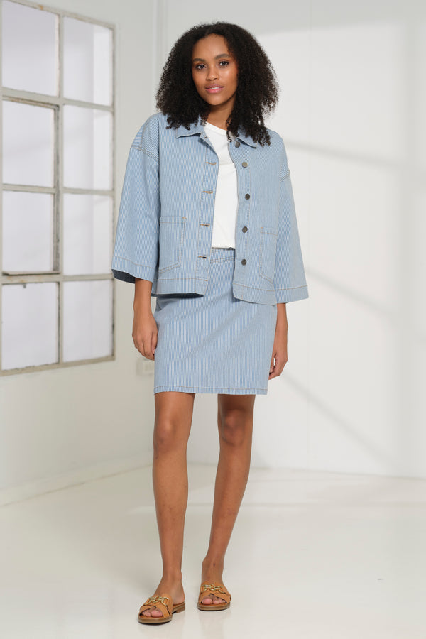 Bree Jacket i skøn mælkestribet denimkvalitet.