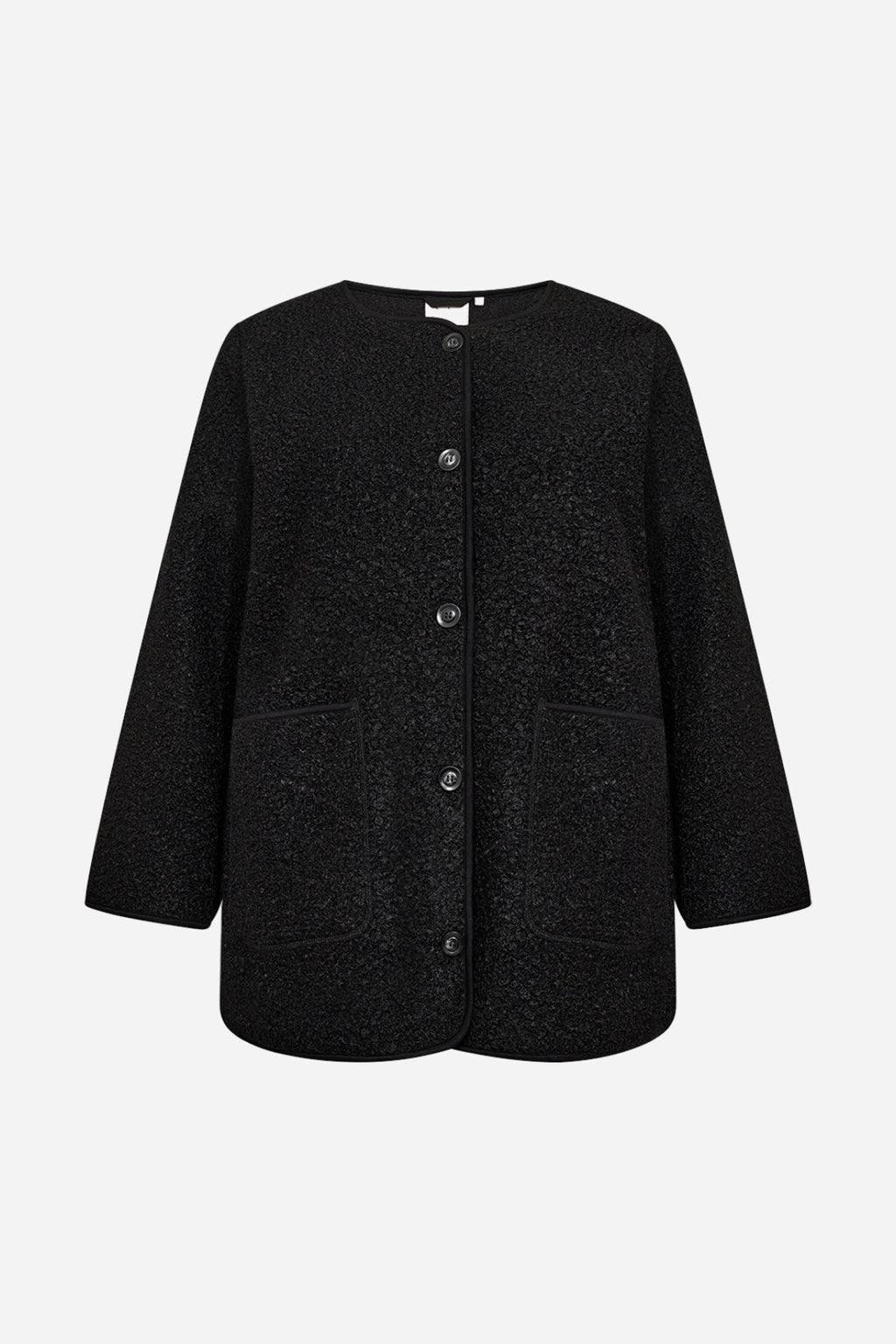 WA-LUCY 2 er en jakke fremstillet af 100 % genbrugspolyester. Jakken har rund halsudskæring, knaplukning, struktureret stof samt to lommer foran. Sæt den sammen med skræddersyede bukser for et elegant look eller med jeans for et afslappet look.