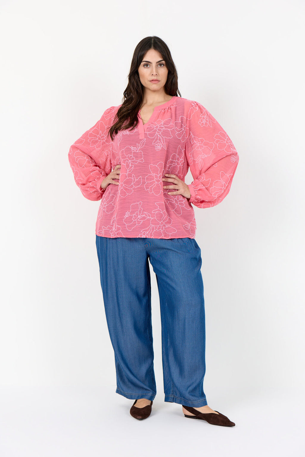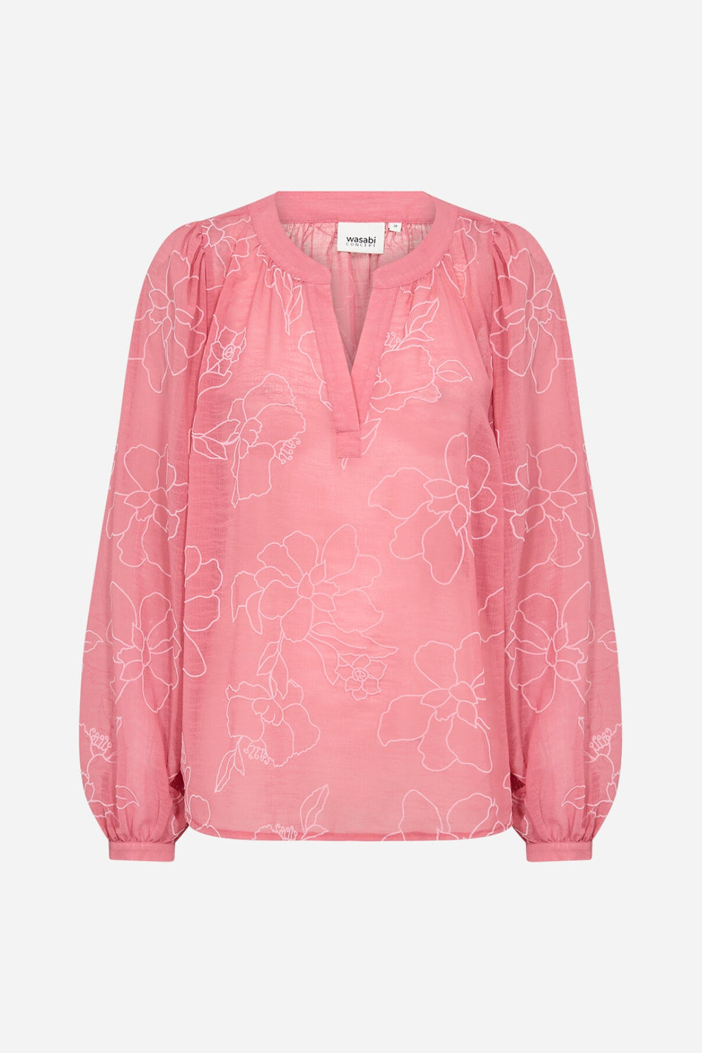 Super sød let bluse med blomster print, v-hals og lange ærmer