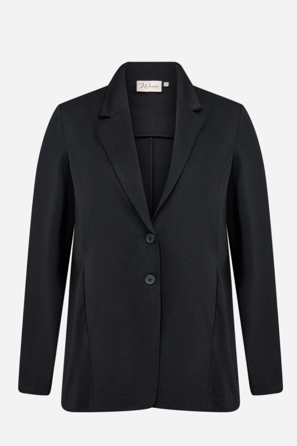 WA-Sina 1 er en skræddersyet blazer fremstillet af en blanding af polyester, viskose og elastan. Denne enkeltradet blazer har en skræddersyet pasform, en revers krave, lange ærmer og to lodrette lommer foran. Style denne feminine blazer med en basis t-shirt og vores matchende bukser for et professionelt look.