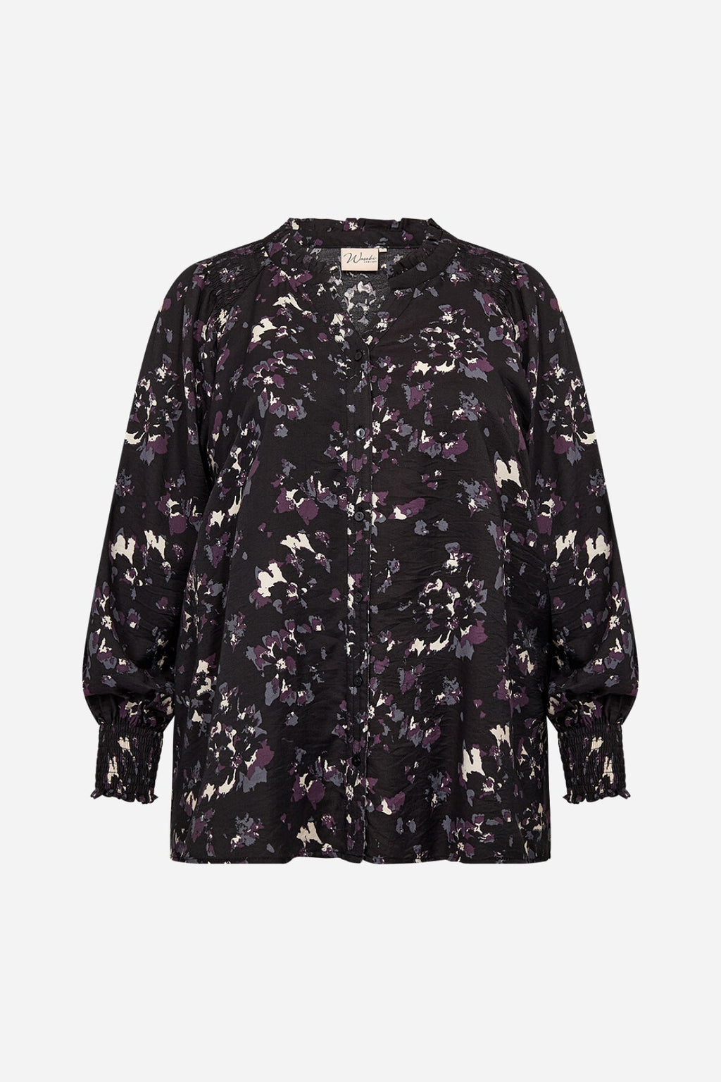 WA-SVALA 1 Bluse er fremstillet af 88% viskose, 12% nylon. Denne elegante bluse har blomsterprint, en diskret v-halsudskæring med fine knapdetaljer og lange ærmer med rynkede manchetter. Sæt den sammen med skræddersyede bukser eller dine yndlingsjeans for et cool og unikt look.